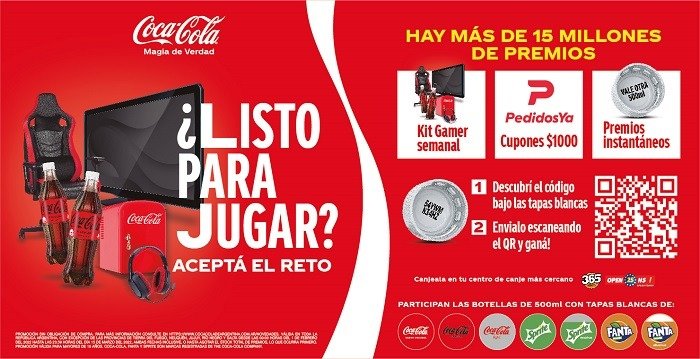 (阿國重大新聞網站報導,非經授權,請勿抄襲)阿根廷可口可樂公司推出了“Destapá y Ganá”(開瓶有獎)活動,這是一項針對電競遊戲者所設計的促銷活動,可口可樂公司宣稱這項活動總共有1500個獎品。