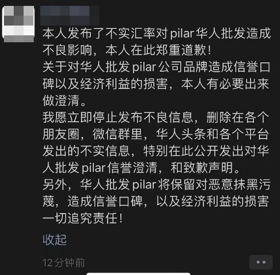 關於近期有人發布不實信息,惡意摸黑污衊 “華人批發PILAR”,不良信息已經損害到 “華人批發PILAR”信譽和口碑,本公司有必要出來聲明和澄清: