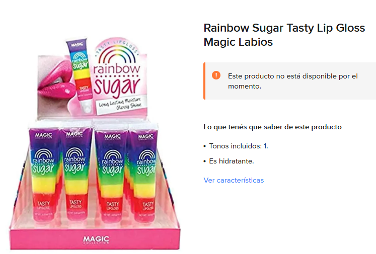 「MAGIC YOUR LIFE」品牌「TASTY RAINBOW SUGAR」唇彩,中國製造,標籤未標示其他衛生註冊資訊。